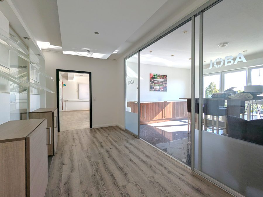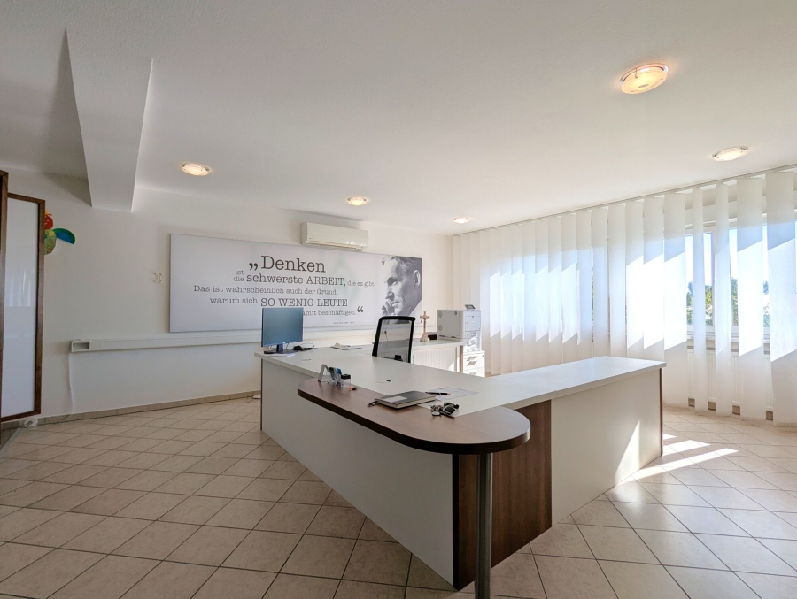 Lichtdurchflutete Räume mit großzügigen Fensterflächen schaffen eine angenehme Arbeitsatmosphäre. Sonnenschutzrollos sorgen dabei für ein angenehmes Raumklima.