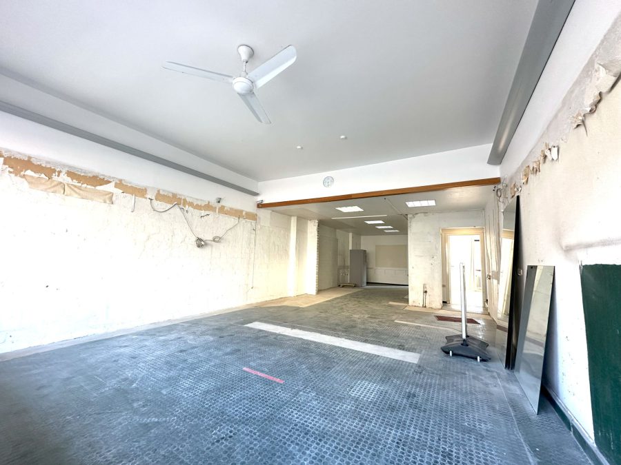 Die ebenerdige Ladenfläche ist bequem über eine automatische Falttür zugänglich. Der ca. 63 m² große Verkaufsraum profitiert von einer großzügigen Schaufensterfront, die den Raum mit natürlichem Licht durchflutet und Ihnen hervorragende Möglichkeiten zur Präsentation Ihrer Waren oder Dienstleistungen bietet.