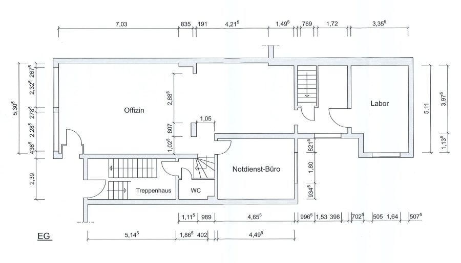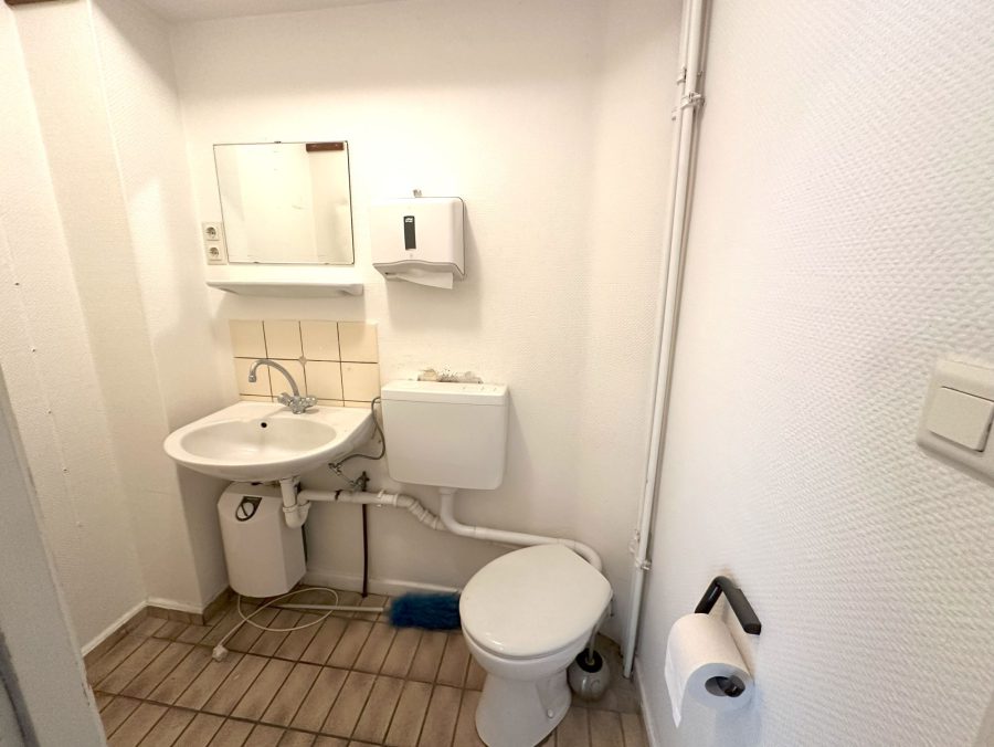 Ein ansprechender Büroraum sowie ein WC, welches über wenige Treppenstufen erreichbar ist, schließen sich direkt an den Verkaufsraum an. Im hinteren Bereich befindet sich ein Lagerraum, der als Durchgang zum Aufenthaltsraum mit anschließendem Laborraum dient.