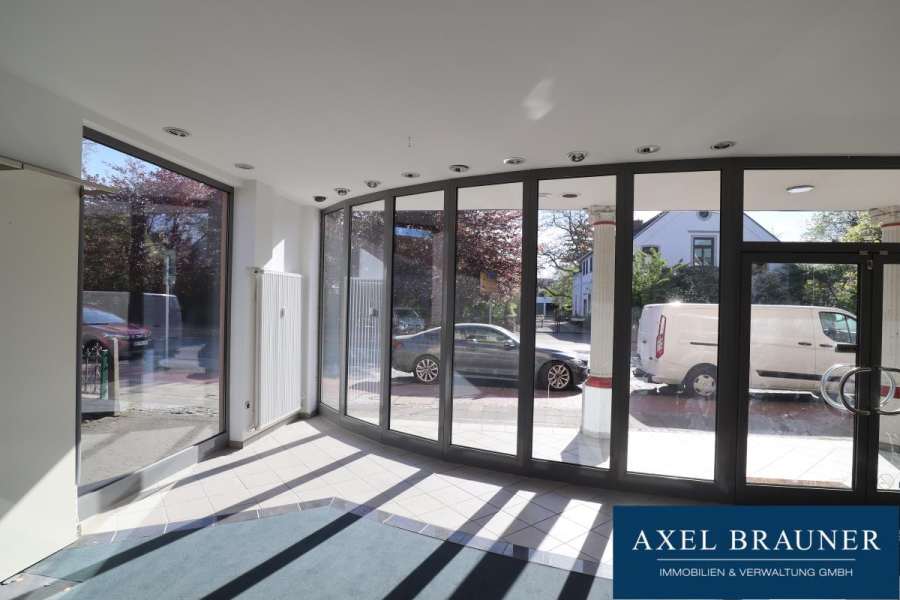Eine zusätzliche Präsentationsfläche steht im überdachten Bereich links und rechts der Eingangstür zur Verfügung.