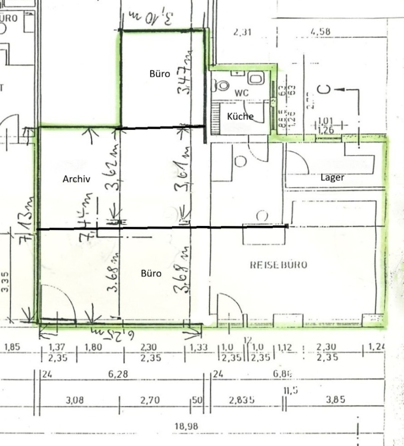 Der offen gestaltete Verkaufsraum bietet ausreichend Platz für Beratung und Präsentation. Ergänzt wird das Raumangebot durch ein separates Büro, ein gut dimensioniertes Archiv- bzw. Lager sowie ein Personal-WC. Der Innenausbau präsentiert sich gepflegt und zeitgemäß; Beleuchtung, Wandgestaltung und Bodenbeläge sind auf eine kundenorientierte Nutzung ausgelegt. Eine letzte Modernisierung erfolgte ca. im Jahr 2023.