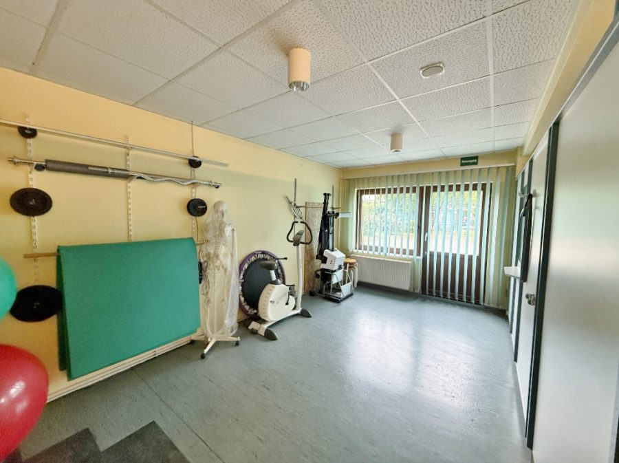 Derzeit wird die Einheit als Physiotherapiepraxis genutzt. Durch einen offenen und einladenden Eingangsbereich ist der große Empfangsbereich zu erreichen. Der geräumige Ausstellungsraum wurde im Zuge der Praxis-Errichtung in mehrere Kabinen unterteilt. Des Weiteren befinden sich zur linken Seite ein Büro, eine Waschküche, ein WC sowie im rückwärtigen Bereich ein weiterer Raum.