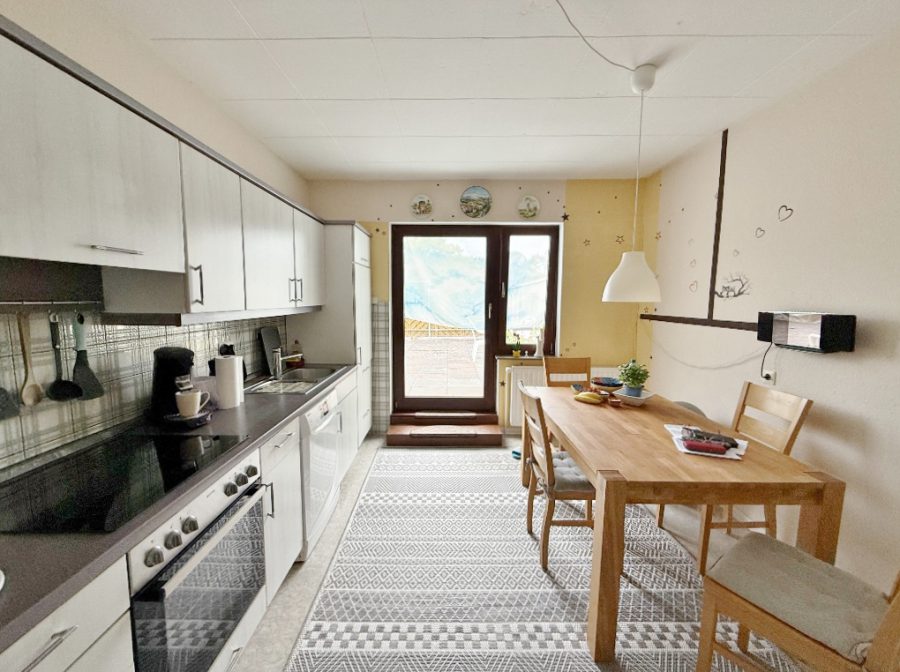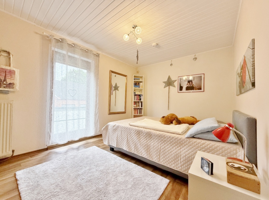 Über einen separaten Nebeneingang gelangen Sie in einen großen Windfang mit Zugang in die obere Etage, wo sich eine attraktive und großzügige ca. 77 m² große Drei-Zimmerwohnung befindet.