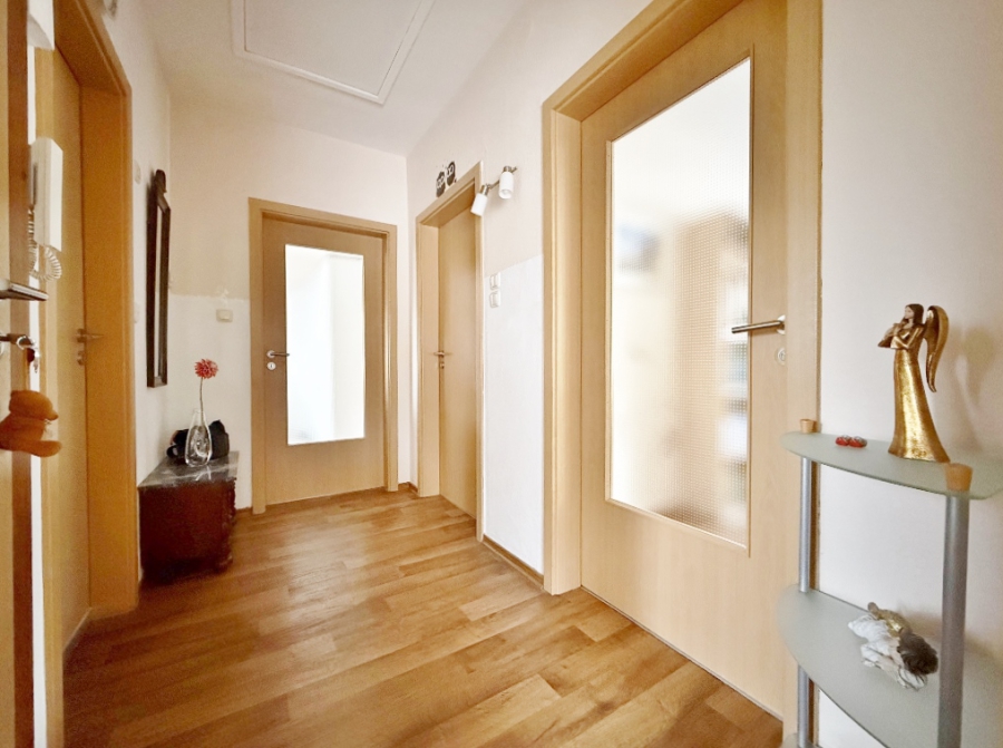 Hier empfängt Sie ein heller Flur, der Ihnen den Zugang zu sämtlichen Räumen ermöglicht.
