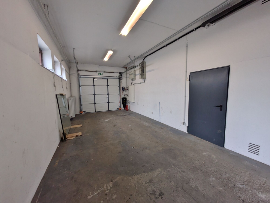 Diese Fläche ist mit einem Schwerlast geeigneten Betonboden, einem Wasseranschluss und diversen Starkstromanschlüssen ausgestattet. Durch die zahlreichen Fensterflächen an den beiden Längsseiten der Immobilie ist eine optimale Versorgung mit natürlichem Tageslicht garantiert. Zusätzlich sind integrierte Deckenleuchten vorhanden. Die Deckenhöhe beträgt ca. 3,40 m und zur Straßenseite ist die Halle über ein elektrisches, ca. 2,40m (h) x 2,60m (b) Sektionaltor zu erreichen.