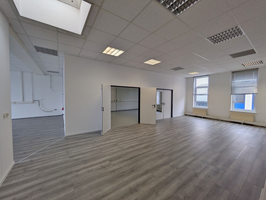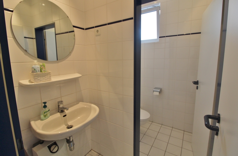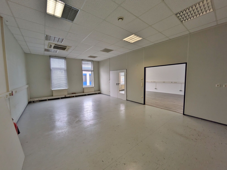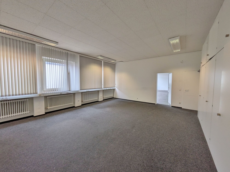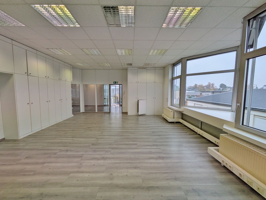 Die Büroräume zur Vorderseite des Gebäudes sind über einen zentralen Flur zugänglich, wobei der vierte Raum über den Besprechungsraum erreicht wird. Alle Büroräume sind mit einheitlichem Laminatboden ausgestattet. Zwei der Räume bieten zusätzlich helle Einbauschränke. Auf dieser Etage stehen ebenfalls separate Damen- und Herren-WCs zur Verfügung.