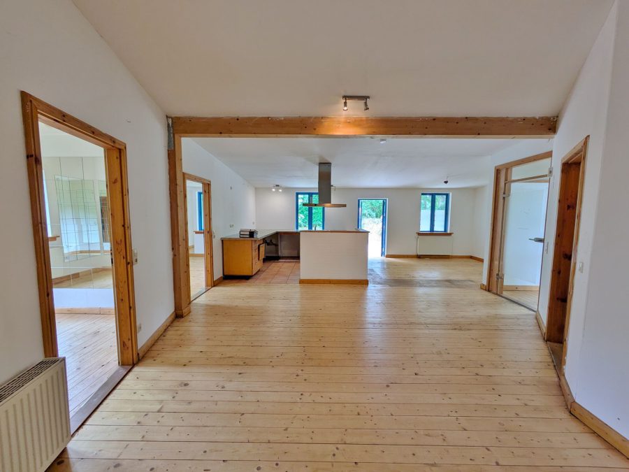 - aktuell Unterteilung in vier Räume, teilweise mit Laminatboden