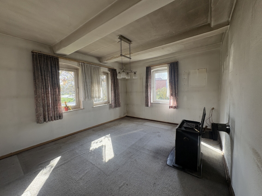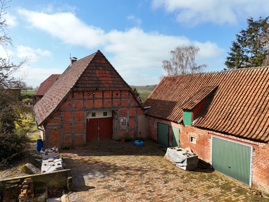 Ein Ort zum Ankommen und Ruhe genießen! Dieses urige Fachwerk-Bauernhaus bewahrt eine stilvolle Hofansicht und gut erhaltene Stilelemente im Hausinneren - darunter ein sichtbares Ständerwerk mit Kopfbändern und stilvolle Füllungstüren. Besonders ansprechend ist das großzügige Grundstück mit weitem Blick über die Felder sowie die Nähe zur Stadt Hoya. Die Ausstattung im Inneren ist sehr einfach gehalten, sodass eine Komplettsanierung erforderlich ist. Hier eröffnet sich viel Raum zur Verwirklichung Ihrer kreativen Ideen!