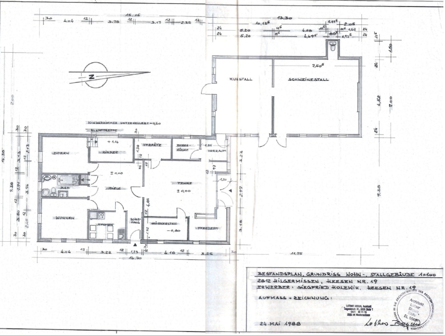 Das Baujahr des Bauernhauses lässt sich laut Höfechronik auf das Jahr 1847 zurückführen - Erdgeschoss, ein Kellerraum, nicht ausgebautes Dachgeschoss. Die Ausstattung ist sehr einfach gehalten, eine Komplettsanierung ist erforderlich.