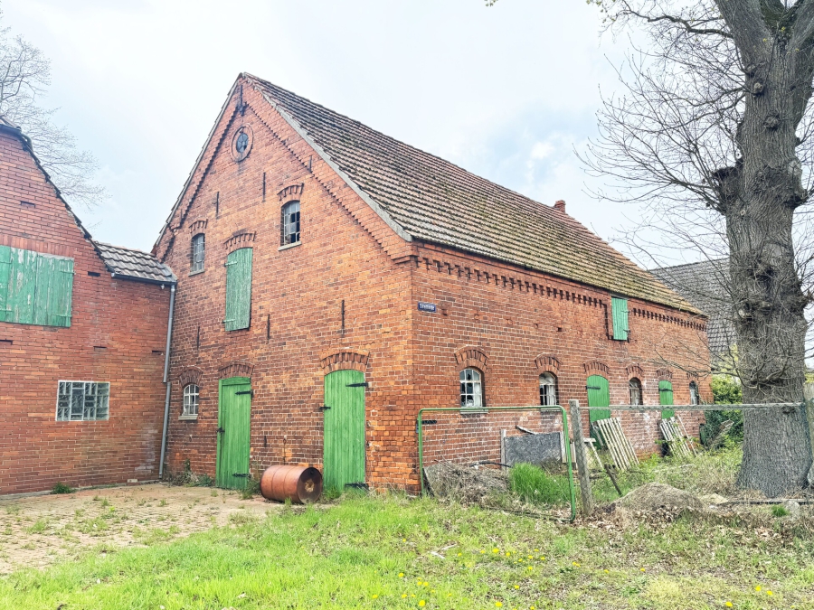 Die kleine Resthofstelle mit Ackerland hat eine Gesamtgröße von 14.510 m². Der Hof ist teilweise gepflastert. Der Garten hinter dem Haus hat die Ausrichtung nach Südwesten und ist in Rasenfläche angelegt. Zusätzlich stehen auf dem Grundstück eine Kastanie und eine Linde. Eine Tierhaltung ist möglich. Auf Wunsch kann eine weitere angrenzende Ackerfläche zur Größe von 13.212 m² zusätzlich erworben werden. Beide Ackerflächen sind aktuell verpachtet.