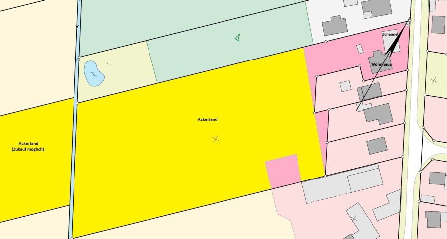 Die angrenzende Ackerfläche mit 12.800 m² ist im Kaufpreis enthalten und bietet sich an zur Tierhaltung, z. B. mit Pferden. Eine weitere angrenzende Ackerfläche von rund 13.200 m² kann auf Wunsch zusätzlich erworben werden, so dass in dieser Lage sogar 27.700 m² Eigentum entstehen können.
