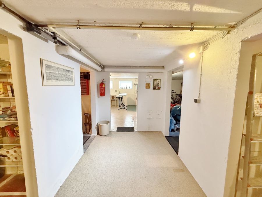 Ein weiterer Pluspunkt ist der Kellerbereich: Der Zugang erfolgt direkt über das Haus, und der Flur im Vollkeller unterstreicht die großzügigen zusätzlichen Abstell- und Nutzflächen. Ob Vorräte, Hobbyraum, Werkstatt oder Hauswirtschaft – der Keller sorgt für spürbar mehr Ordnung und Flexibilität im Wohnalltag.