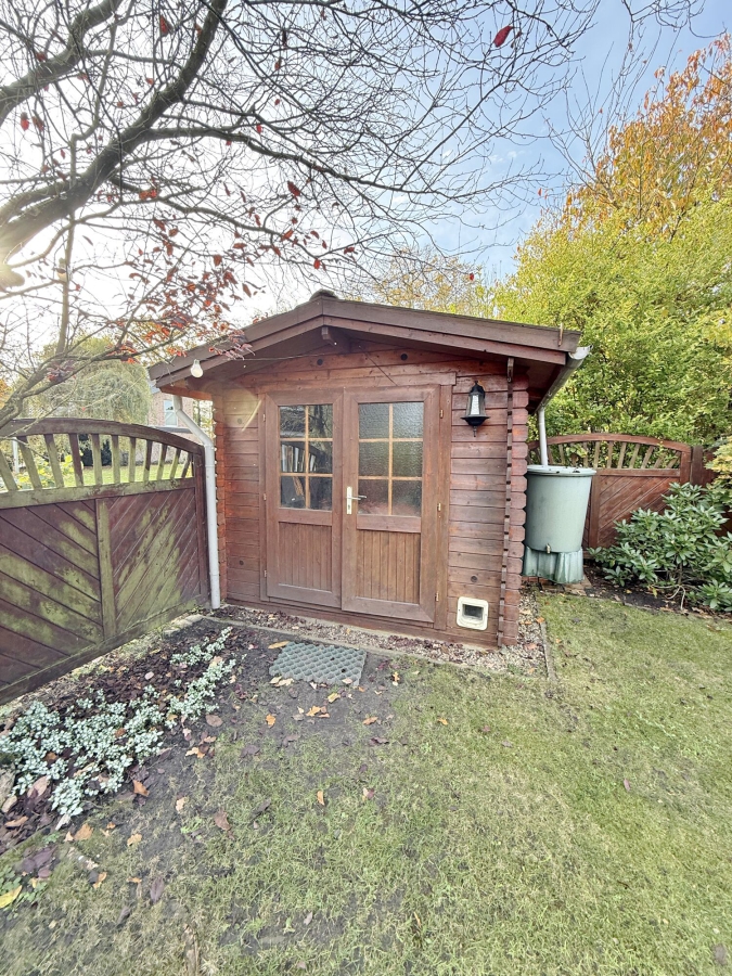 Neben einem Gartenholzhaus für Werkzeuge und Geräte steht Ihnen angrenzend an dem Carport ein zusätzlicher Holzschuppen für Fahrräder oder weitere Utensilien zur Verfügung.