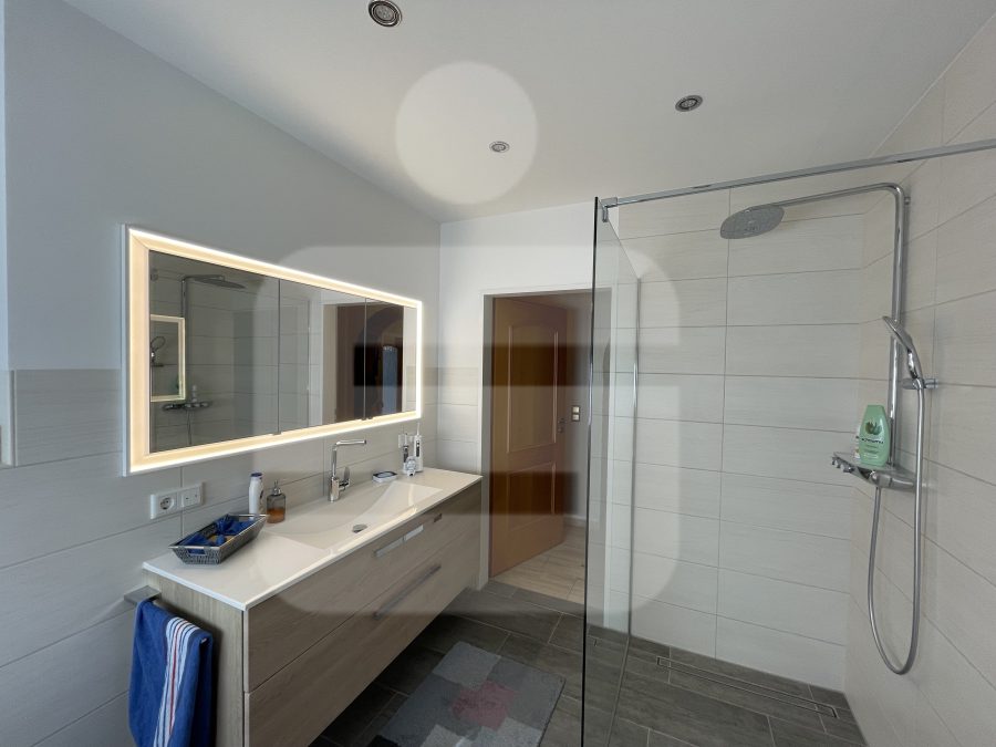 - Besonderheiten: elektr. Sektionaltore fensterfarben, teilw. elektrische Rollläden, großer Dachüberstand, Fußbodenheizung in den Bädern, Einbauschrank im Bad im EG, Einbauküche & Mähroboter