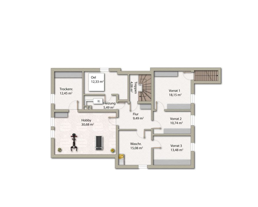 - Energieversorgung Heizung: 4 Kunststofftanks á 2000 Liter Fassungsvermögen in gesicherter Betonwanne im Keller