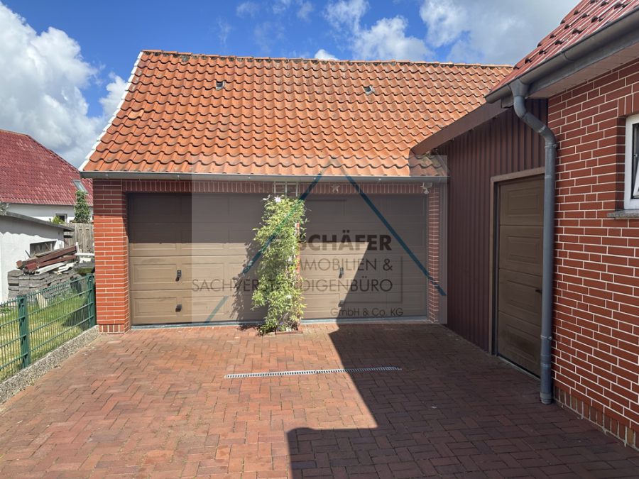 Eine Doppelgarage befindet sich auf dem Grundstück.