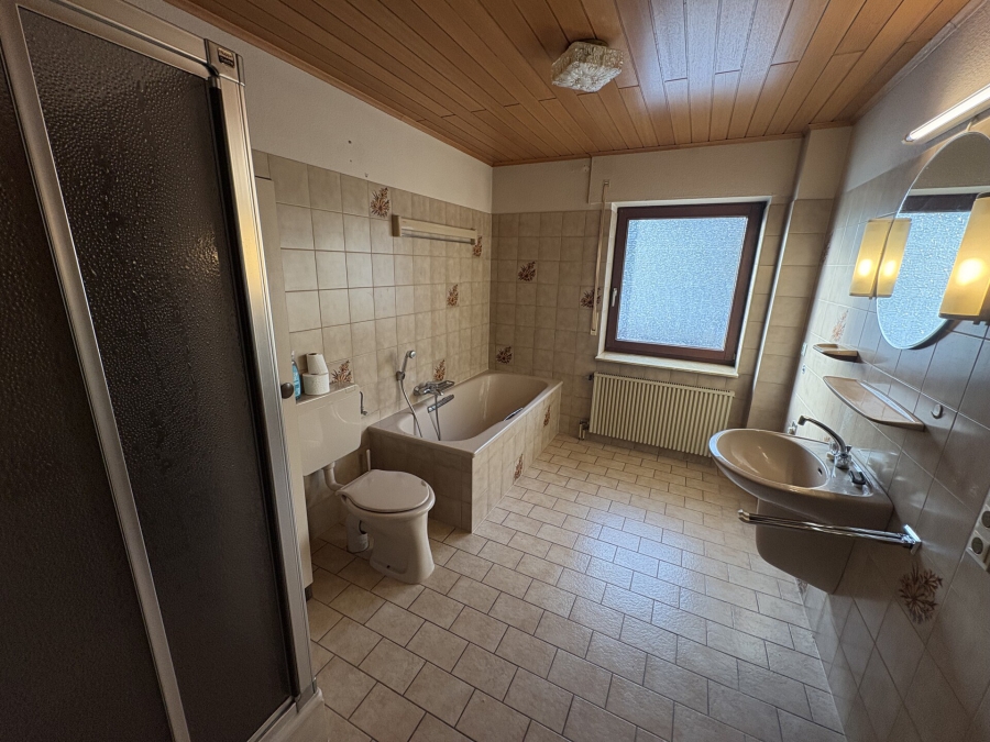 - großzügiges Badezimmer mit Badewanne, Dusche, WC und Waschbecken