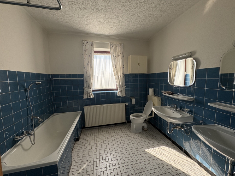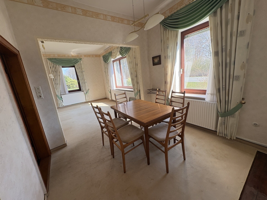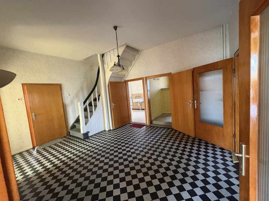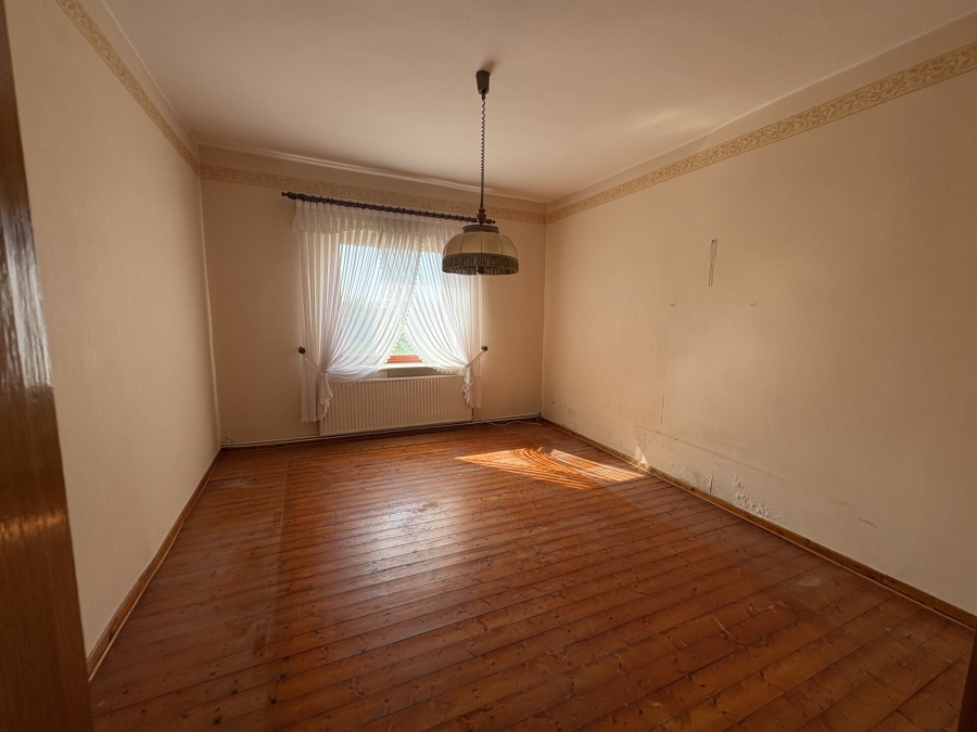 Das Wohnhaus wurde ca. 1900 - ggf. etwas später - erbaut und hat eine Wohnfläche von insgesamt 227 m². Neben dem Erdgeschoss und dem ausgebauten Dachgeschoss gibt es einen kleinen Kellerraum. Einige Investitionen wurden in der Vergangenheit getätigt, wie z.B. die Dacheindeckung mit Tonfalzziegeln, leichte Außendämmung dreier Außenwände, Erneuerung von Türen und Bad im Dachgeschoss und der Austausch der Fenster. Am und im Wohnhaus sind umfangreiche Revovierungsarbeiten, auch in energetischer Hinsicht, notwendig.