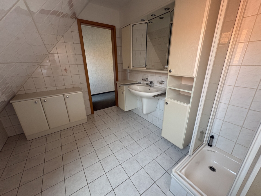 - leichte Feuchtigkeitserscheinungen an der Kelleraußenwand, an der Fensterlaibung des Velux-Fensters und im Badezimmer des Dachgeschosses