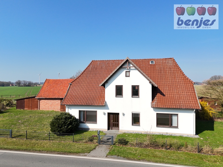 Grundstück: Das Grundstück hat eine Gesamtgröße von 5.306 m³ und liegt in Einzellage idyllisch zwischen Feldern und Wald. Das Wohnhaus und die Nebengebäude sind umgeben von großzügigen Rasenflächen. Diese bieten viel Platz für Spielgeräte wie Schaukeln, Trampoline oder Klettergerüste. Aber natürlich auch zur Anlage von Blumenbeeten, Hochbeeten oder gemütlichen Sitzecken zum Verweilen. Hinter dem Gebäudeensemble schließt sich eine umzäunte Weidefläche an, so dass hier auch Kleintierhaltung möglich ist. Die Siedenburger Straße als übergeordnete Verbindungsstraße erinnert daran, dass eine gute Verkehrsanbindung zur B6 und auch zur B214 vorhanden ist.