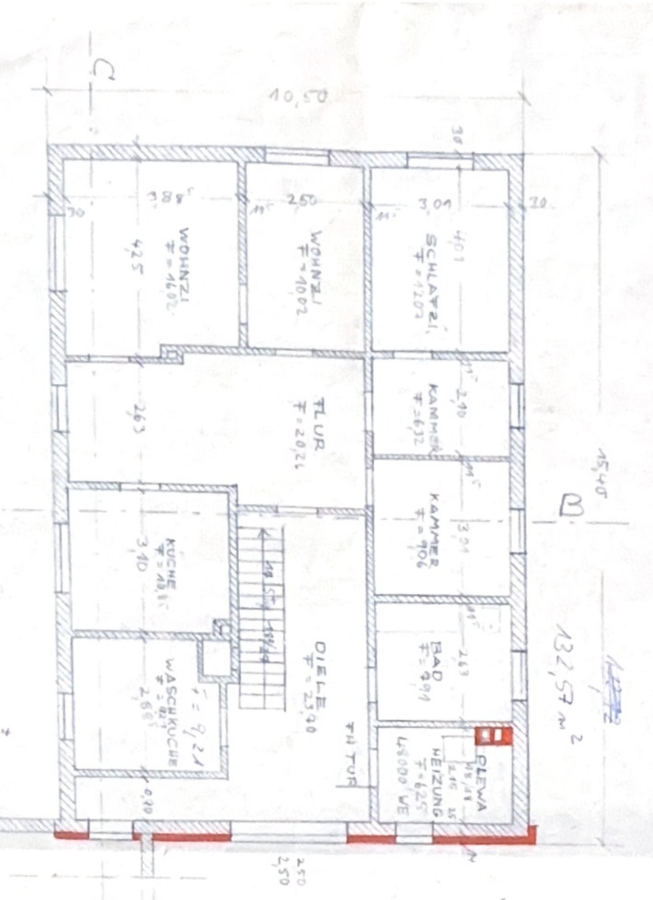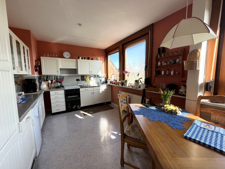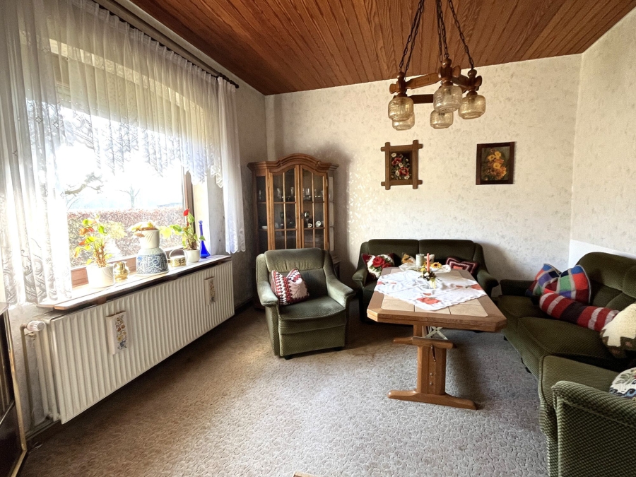 Im Erdgeschoss zeigt sich die Immobilie in einem älteren, ursprünglichen Zustand und ist entsprechend sanierungs- bzw. modernisierungsbedürftig. Die vorhandenen Räume spiegeln den Charme vergangener Jahre wieder und bieten eine solide Basis für Käufer, die ihre eigenen Wohnideen verwirklichen möchten. Besonders im Küchenbereich und in Teilen der Ausstattung ist der Modernisierungsbedarf klar erkennbar, zugleich bietet genau dieser Bereich viel Potenzial für eine zeitgemäße Neugestaltung.