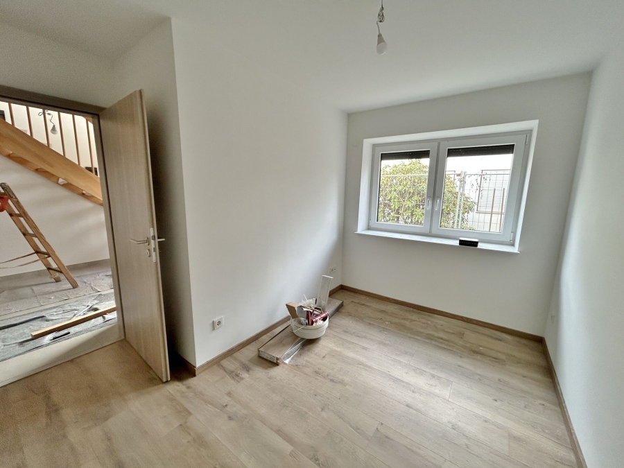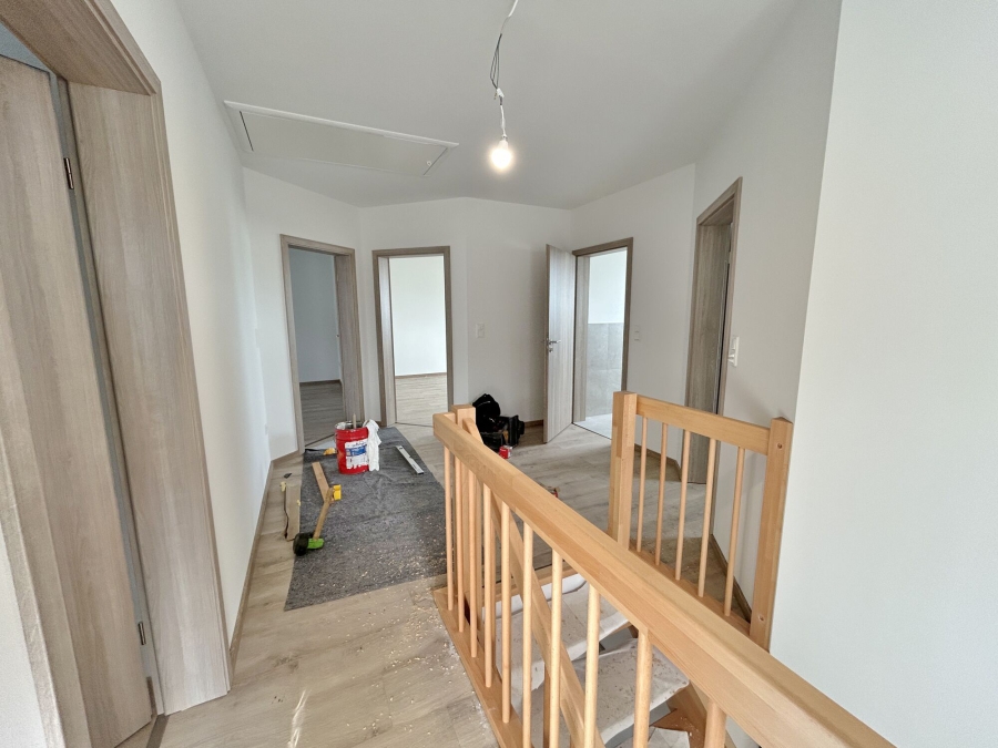 Zur linken Seite beginnend mit einem kleineren Zimmer, welches als Gästezimmer genutzt werden kann und damit etwas separat vom restlichen Haus gehalten ist. Dieses dient zudem als einer der Zugänge zum Heizungsraum. Zur rechten Seite finden Sie ein etwas größeres Zimmer, welches zukünftig Ihr Homeoffice Arbeitsplatz werden könnte.