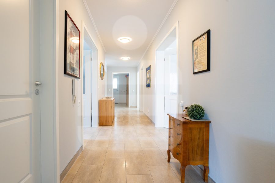 Dass Haus besticht durch eine tolle Atmosphäre innen, wie außen und hat viel tolle Details. Die Räume sind durchgehen hell und freundlich gestaltet und das Erdgeschoss bietet jung und alt viele Annehmlichkeiten. Aktuell ist die Einliegerwohnung im Obergeschoss für eine Warmmiete von 600,00 EUR pro Monat vermietet, die Mieterin ist auf der Suche nach einer Alternative. Die Wohnung eignet sich hervorragend zur Fremdvermietung, für eine Pflegekraft oder zur Nutzung durch Ihre erwachsenen Kinder.