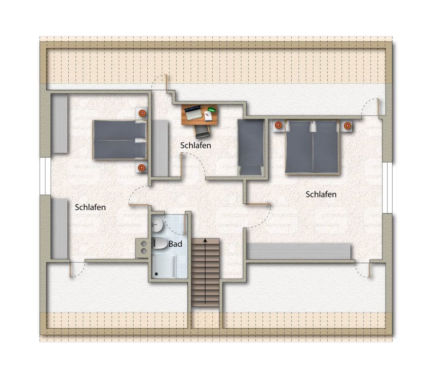 Das Haus wurde solide gebaut, verfügt über ein durchdachtes Raumkonzept mit hellen und freundlichen Wohnbereichen. Die Wohnfläche verteilt sich auf zwei Ebenen und bietet vielfältige Nutzungsmöglichkeiten – vom großzügigen Wohnzimmer über mehrere Schlafzimmer und Arbeitszimmer bis hin zu ausreichend Stauraum.