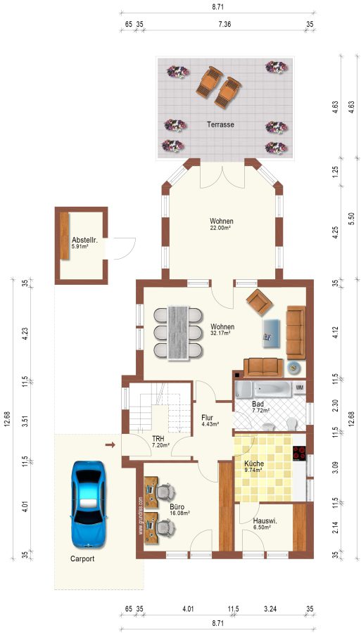 bietet viel Platz für die ganze Familie und sorgt mit 2 Badezimmern für Komfort und Bequemlichkeit.