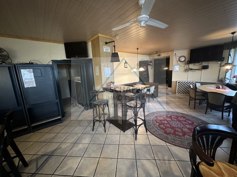 Gaststätte: Diese verfügt über einen einladenden großen Gastraum, einen weiteren Clubraum, eine Küche, Privatraum, ein Damen-WC und ein Herren-WC.