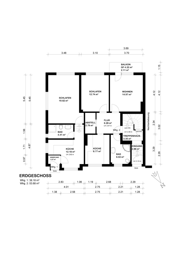 - zwei Teilflure