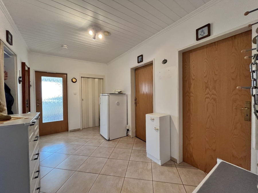 - Fliesen im Windfang und Bad