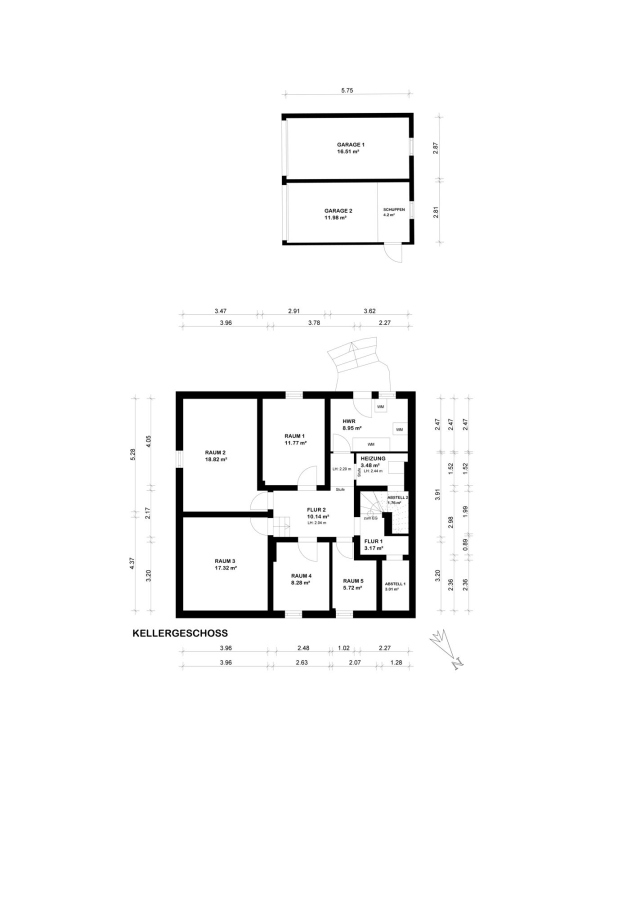- fünf separate Kellerräume