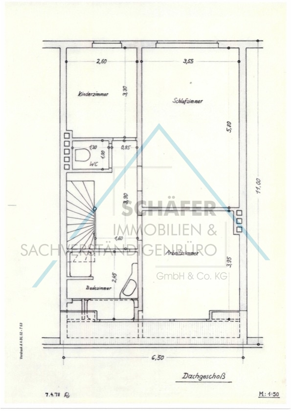 - Dachgeschoss: 3 Zimmer, Bad, WC, ( 56,35 qm)