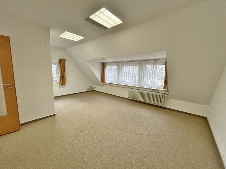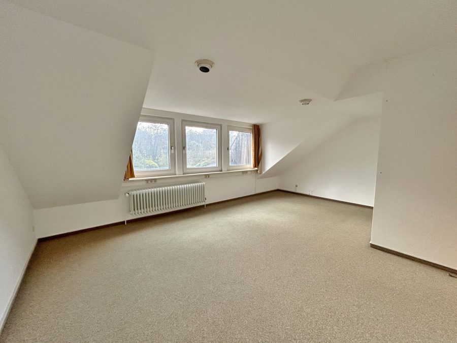 Über den Flur im Obergeschoss erreichen Sie auch das Dachgeschoss und durch einen Durchbruch in der Wand darüber hinaus das Dachgeschoss der rechten Hausseite. Dies bietet Ihnen zusätzlich sehr viel Platz für Hobbyraum oder Büro.