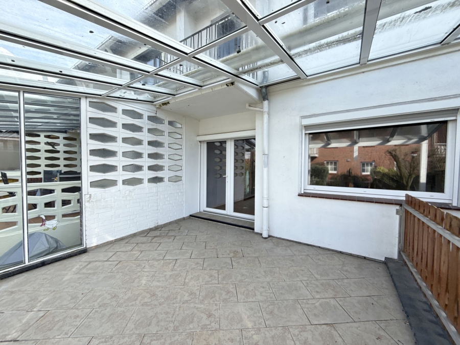 Das Herzstück des Hauses bildet das helle und großzügige Wohnzimmer. Große Fensterflächen sorgen für viel Tageslicht und schaffen eine angenehme Wohnatmosphäre. Von hier aus gelangen Sie auf die überdachte Terrasse mit Blick in den Garten – perfekt für entspannte Stunden im Freien.
