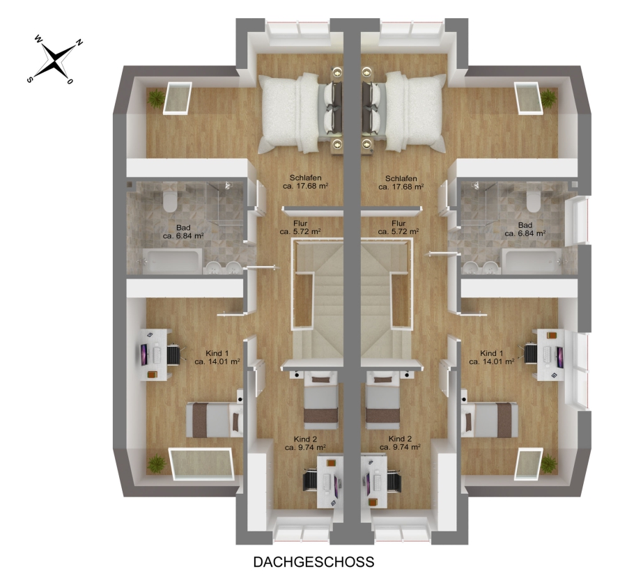 Die durchdachte Raumaufteilung bietet Ihnen Flexibilität und Komfort – wählen Sie zwischen einem Grundriss mit fünf Zimmern und offener Wohnküche oder einer Variante mit vier Zimmern und separater Küche. Im Erdgeschoss stehen Ihnen neben dem Wohnzimmer und der Küche ein Duschbad, ein Haustechnikraum und ein Hauswirtschaftsraum zur Verfügung, während das Dachgeschoss drei Schlafzimmer und ein großzügiges Vollbad bietet. Für zusätzlichen Raum kann der Spitzboden optional ausgebaut werden.