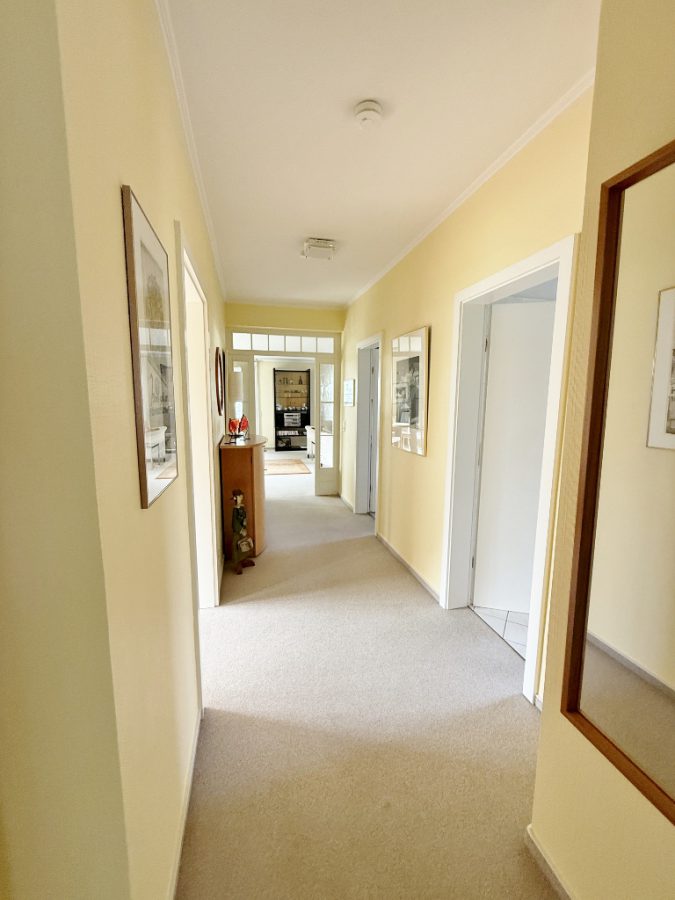 Die Erdgeschosswohnung bietet ca. 94 m² Wohnfläche, verteilt auf drei Zimmer, eine Küche, ein Vollbad sowie ein Gäste-WC. Alle Räume sind bequem vom zentral gelegenen Flur aus zu erreichen.