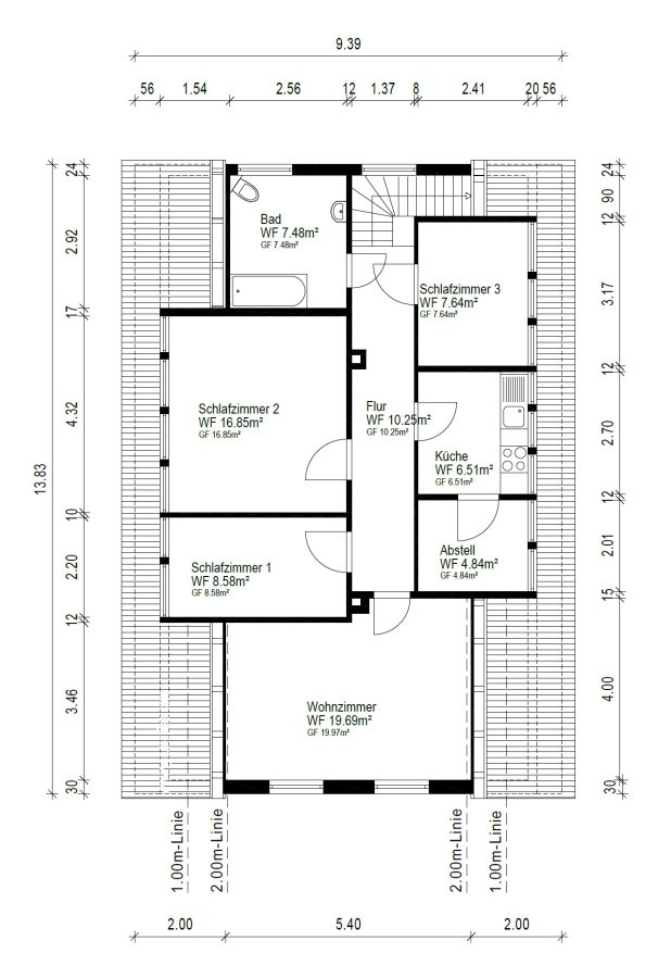- Separater Eingang und Holztreppe ins Dachgeschoss