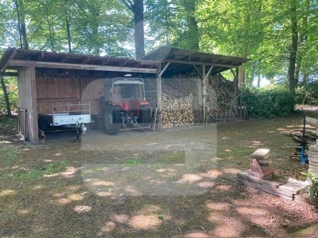Ein besonderes Highlight stellt die auf dem Grundstück befindliche Lagerhalle dar. Diese bietet vielseitige Nutzungsmöglichkeiten und kann – dank vorliegender positiver Bauvoranfrage – bei Bedarf zu weiterem Wohnraum umgebaut werden. So eröffnen sich zusätzliche Optionen für Gäste, Familienmitglieder oder auch ein separates Büro oder Atelier.