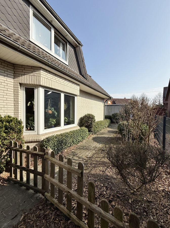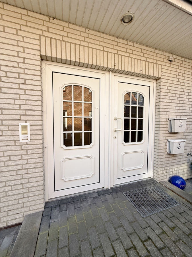 Bereits die gepflasterte Zufahrt, vorbei an den Garagen, vermittelt einen gepflegten ersten Eindruck. Über den einladenden Windfang sind beide Wohnungen sowie der Hausanschlussraum bequem erreichbar.