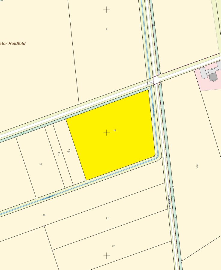 1.38.27 ha Ackerland Flur 9 Flurstück 18, Lage: "Lange Grund". Die Fläche grenzt im Norden an die Straße zwischen Adolfshausen und Jerusalem. Im Osten und Süden grenzt sie an den Graben "Heidewätern.