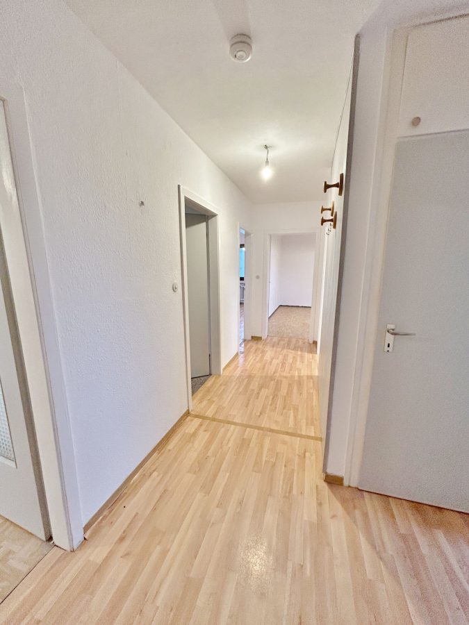 Beim Betreten der Wohnung gelangen Sie in einen einladenden Flur, der Zugang zu allen Räumen bietet. Das geräumige Wohnzimmer ist der zentrale Treffpunkt und bietet viel Platz für gemeinsame Stunden. Große Fenster sorgen für viel Tageslicht und einen angenehmen Wohnkomfort.