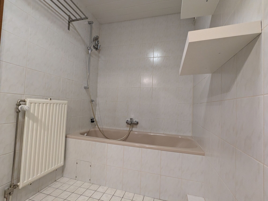 Das innenliegende, hell geflieste Duschbad präsentiert sich gepflegt und funktional.