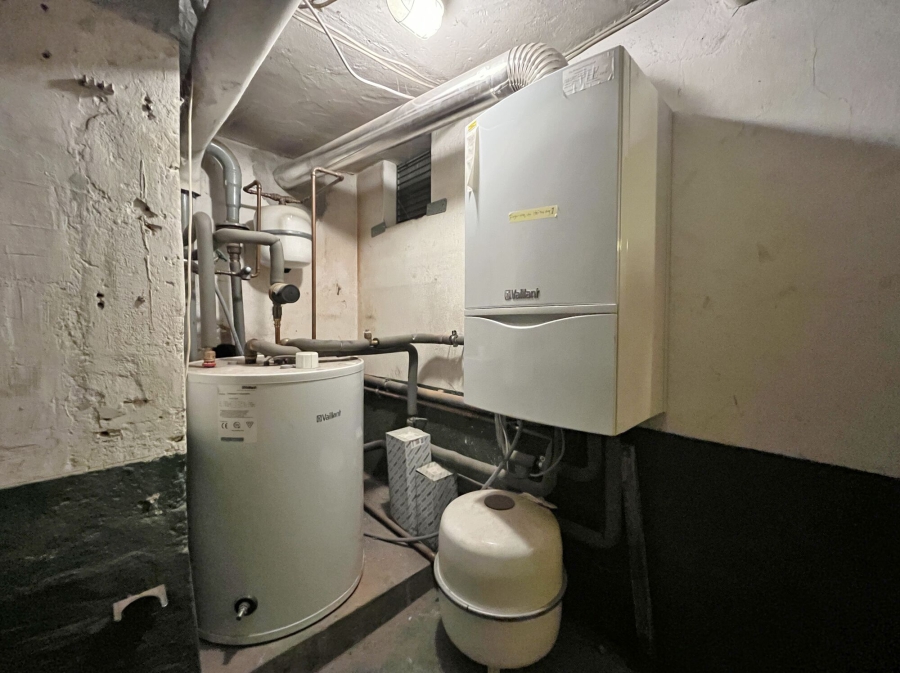 - eigene Gasbrennwerttherme mit Warmwasserspeicher aus 2013 (im Keller)