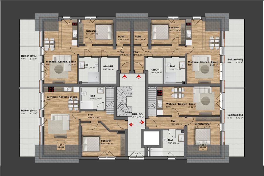 - Wohnbereiche mit offener Küche