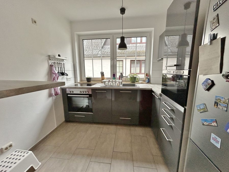 Die Küche ist aktuell als separater Raum vorgesehen, liegt aber direkt neben dem Wohnzimmer, könnte also sicherlich mit wenig Aufwand zur offenen Küche umgestaltet werden. Die aktuellen Einbauten sind Eigentum der Mieterin.