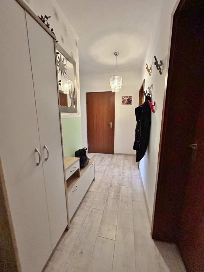 Der Flur in L-Form führt Sie in alle Zimmer, angefangen mit dem Badezimmer zur rechten Seite. Ausgestattet mit Badewanne, Fenster und einem fröhlichen grünen Farbton, der bei dem ein oder anderen Kindheitserinnerungen weckt. Hier befindet sich auch die Gasetagenheizung und ein Waschmaschinenanschluss. Wer den Platz anderweitig nutzen möchte, hat auch die Möglichkeit, die Waschmaschine im gemeinschaftlichen Waschkeller unterzubringen.