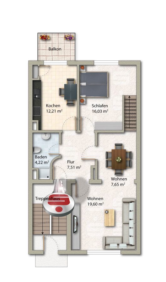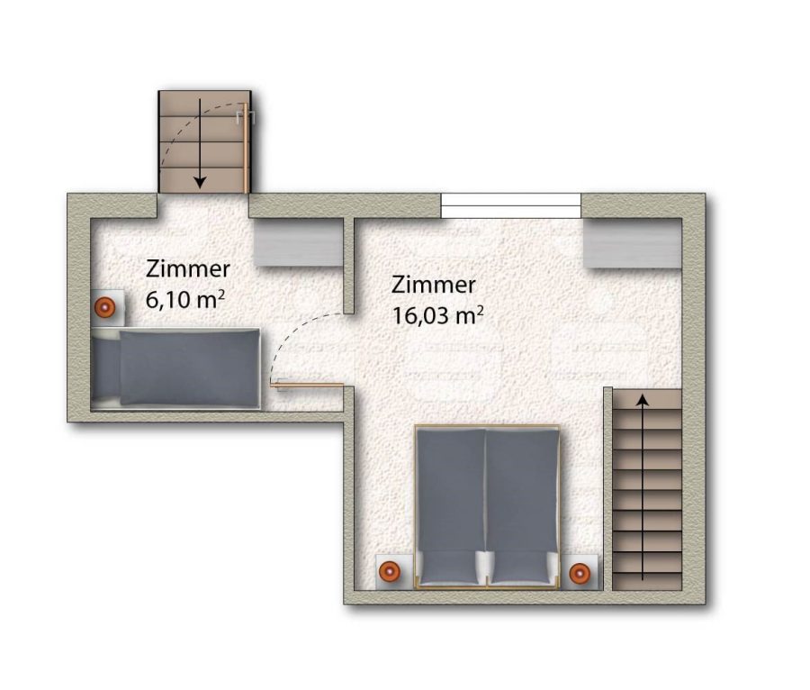 Die Raumaufteilung im Hochparterre gestaltet sich wie folgt: