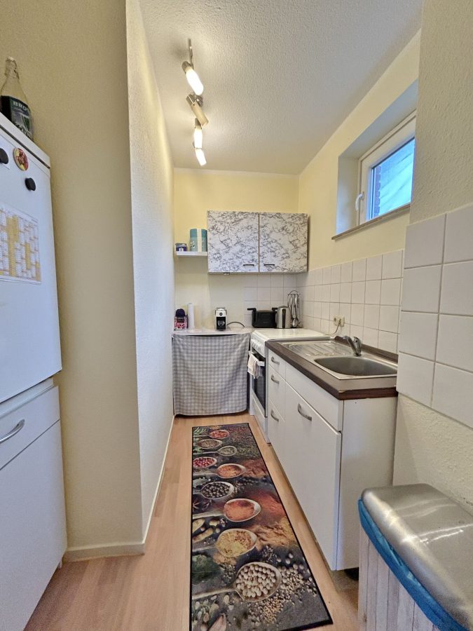 - schlichte Einbauküche mit E-Geräten